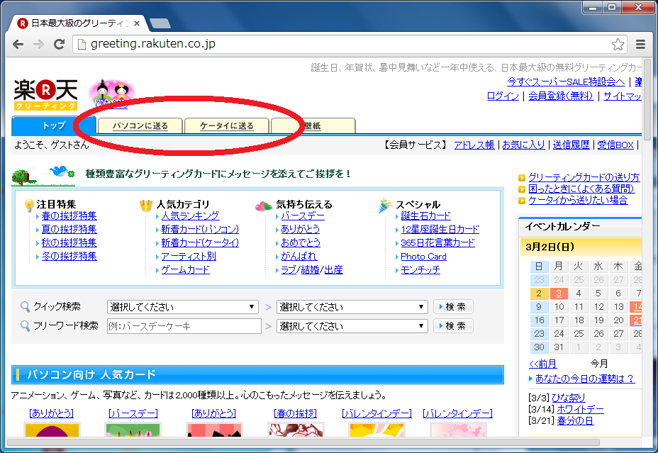 検索サイトで「楽天グリーティング」と検索すれば先頭に出てきます。